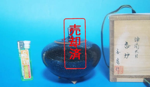 京焼 清水焼 鴻応窯 安房幸男 油滴天目 香炉 共箱 銘品 逸品