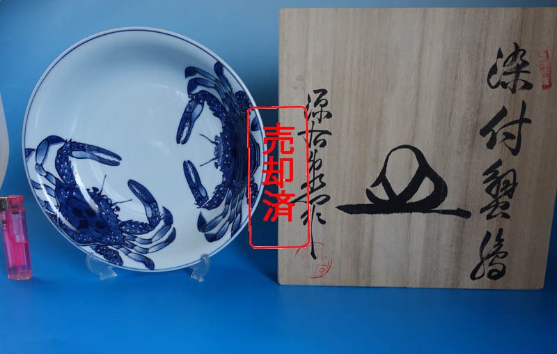 有田焼 古伊万里様式 源右衛門窯 染付 蟹絵 飾り皿 大鉢 大皿 共箱 蟹図 | 古美術 積善堂