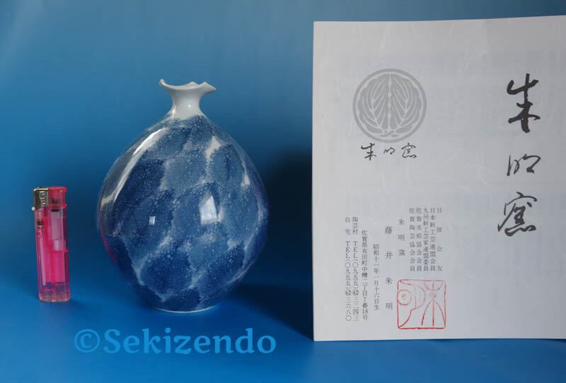 有田焼 古伊万里様式 染付 木立文 藤井朱明 朱明窯 飾り壷 花瓶 です。