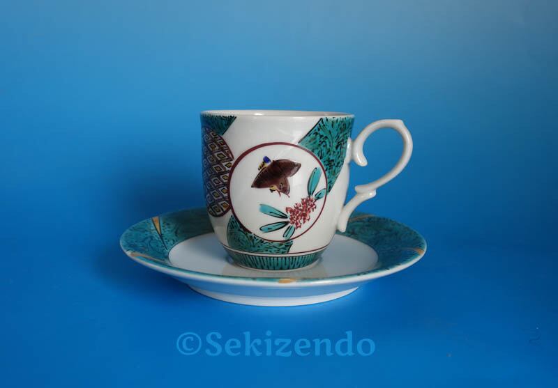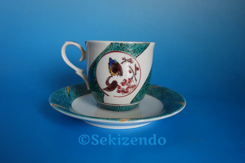 九谷焼 窓絵 色絵花鳥文 松浦慎弥 カップ&ソーサー 碗皿 共箱 芸術公論 ベストアーチスト40