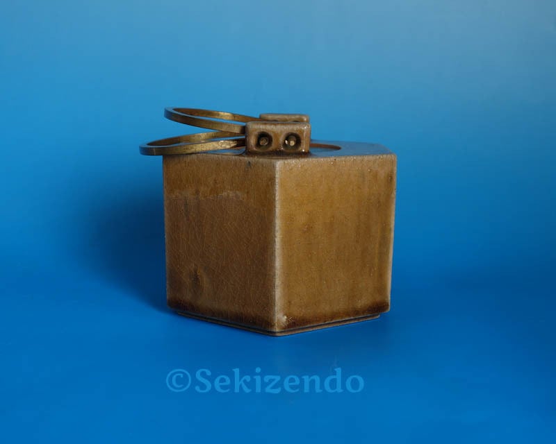 京焼 清水焼 六角 象嵌 草花文 水注 ポット 瓶 真鍮製 持ち手 蓋