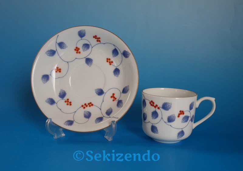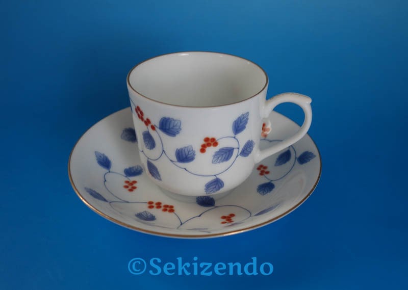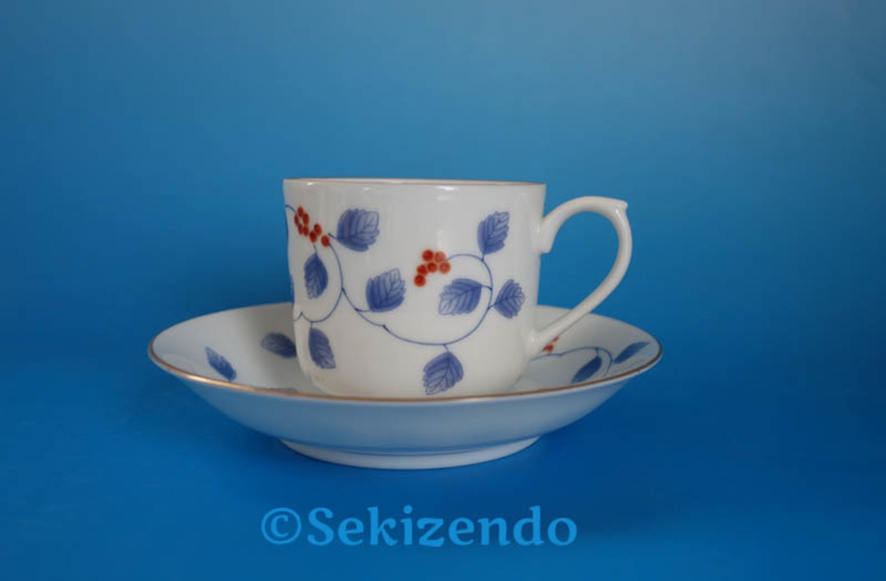 有田焼 古伊万里様式 染錦 深川製磁 葡萄文 カップ&ソーサー 碗皿 珈琲碗皿