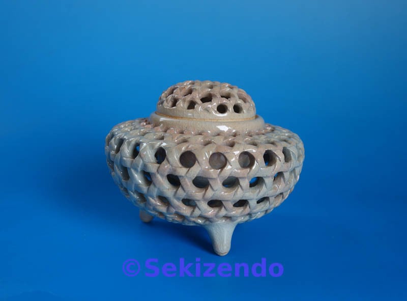 萩焼 無田庵 倉増資陽 透し彫 三足香炉