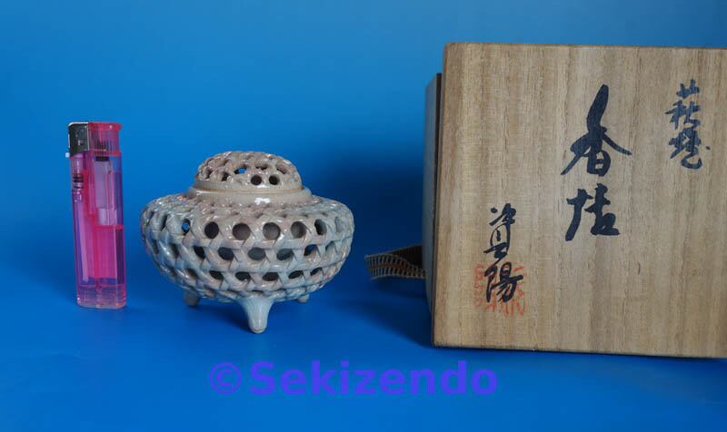 萩焼 無田庵 倉増資陽 香爐 透し彫 三足香炉 香炉 香道具 茶道具 共箱 未使用