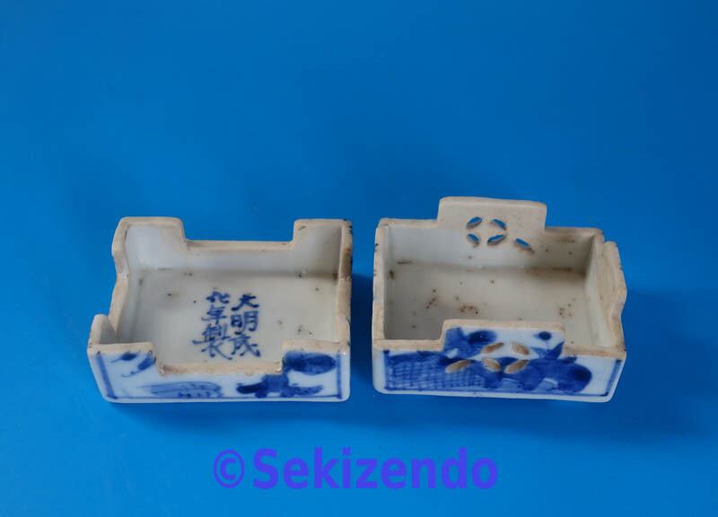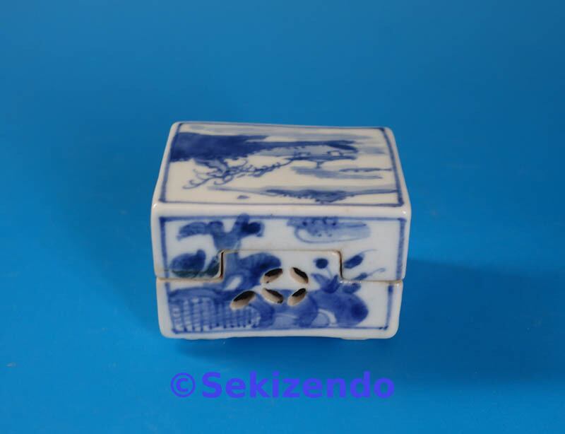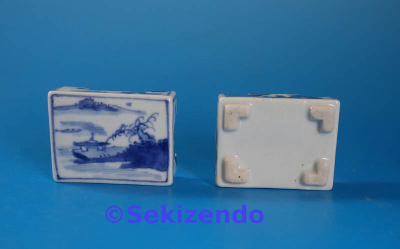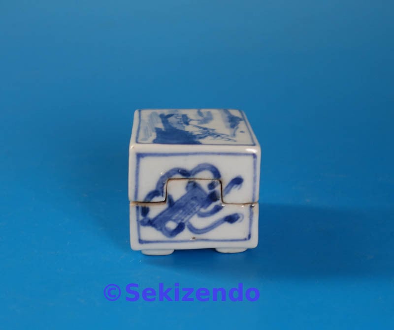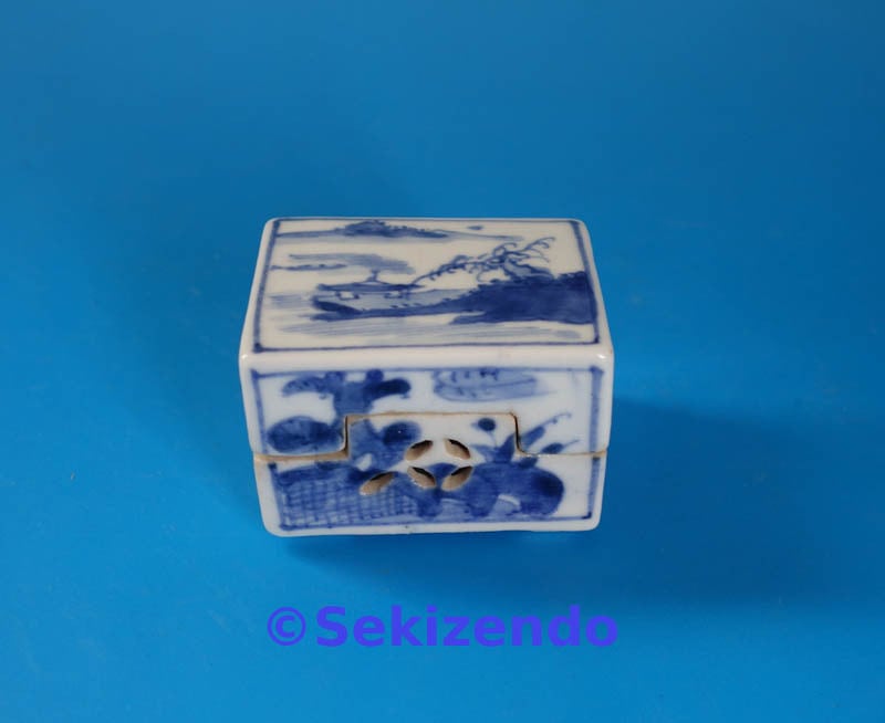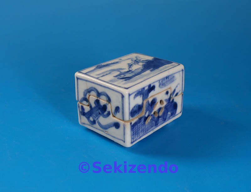 本商品は中国美術 青花 染付 四方 香合 山水図 香道具 盒子 蓋物 古美術品 景徳鎮窯 明時代・17世紀 です。