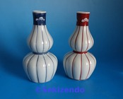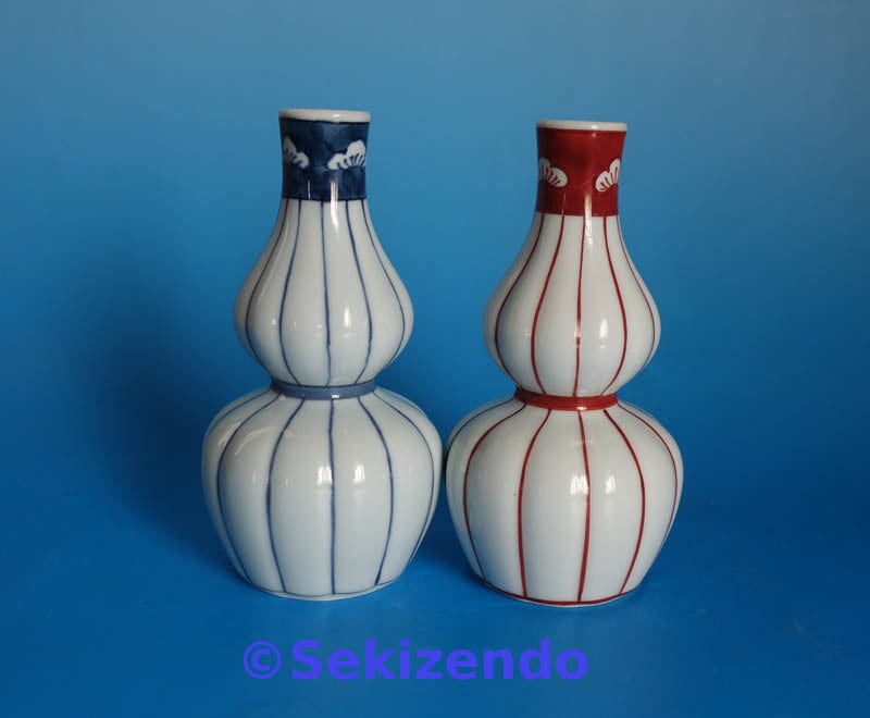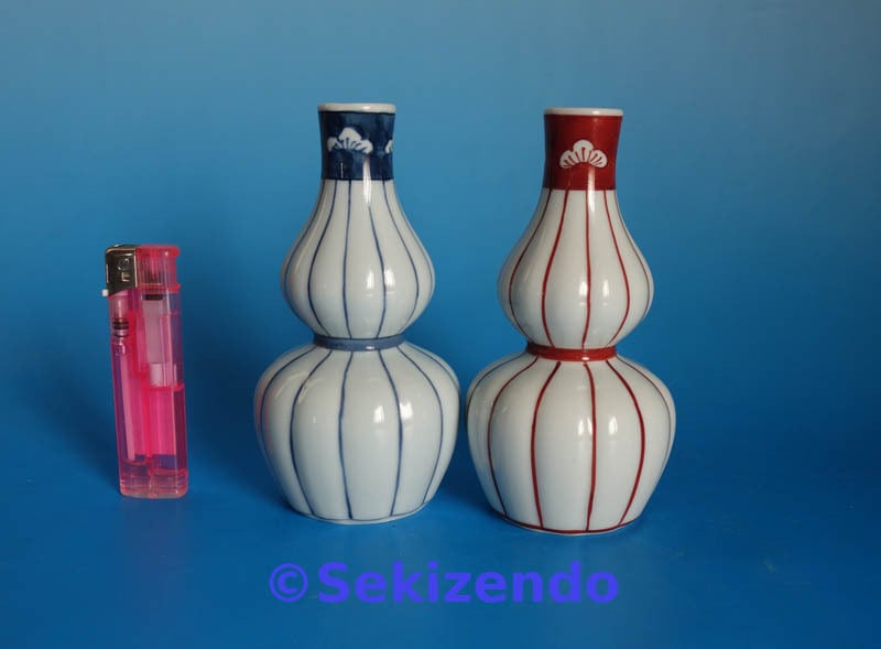 有田焼 源右衛門窯 染付 赤絵 瓢箪形 十草 千筋 面取 松図 徳利 2個セット 酒器