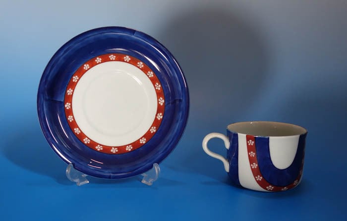 有田焼 古伊万里様式 染錦 源右衛門窯 梅小紋 カップ&ソーサー 碗皿